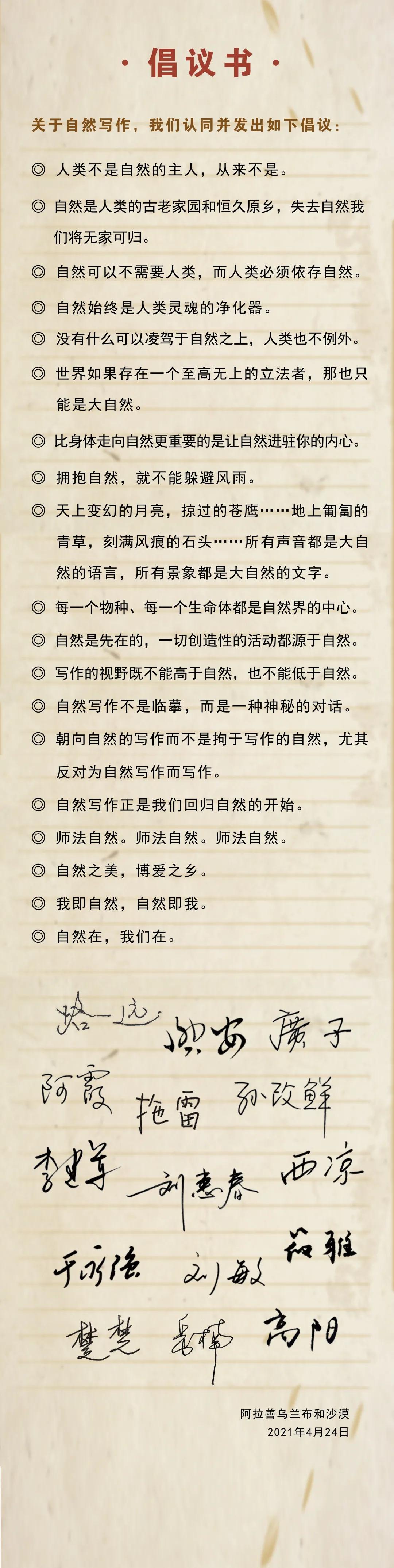 《草原》自然写作营“乌兰布和”倡议书