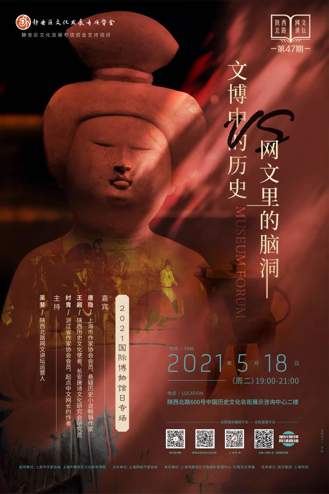 5月18日是国际博物馆日,本期陕西北路网文讲坛将举办“2021国际博物馆日专场”,邀请来自西安的”陕西历史文化使者”王超与两位擅长历史题材的畅销作家对话,文博工作者的实证精神与网络作家脑洞大开的历史描绘,常常带给观众和读者完全不同的历史认知,这次就让他们在网文讲坛PK一下。