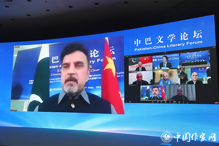 论坛上,周瑄璞、元康、武歆、霍俊明、周袁等电竞竞猜、诗人、学者和穆斯坦萨尔·侯赛因·塔拉尔、贾米·钱迪欧、阿巴辛·尤萨夫扎伊、穆尼尔·艾哈迈德·巴迪尼、马克苏德·贾弗里等巴基斯坦作家、诗人轮流发言,围绕论坛主题和“文学在中巴命运共同体中的独特作用”“中巴文学传统与未来趋势”等分议题展开广泛深入的交流。大家表示,疫情虽然阻隔了大家的相聚,但中巴两国人民始终心心相连。文学是中巴两国沟通交流的重要桥梁和纽带。随着两国学习汉语和乌尔都语的人数不断增加、经典著作互译出版合作的开展,中巴文学交流呈现出良好势头和巨大潜力。相信此次论坛的举办,必将进一步深化中巴作家和人民的相互了解,切实促进两国的民心相通,更好地巩固双方的文学交往,把两国文学合作推向全新阶段,为携手打造新时代更加紧密的中巴命运共同体作出积极贡献。