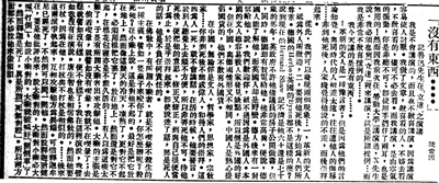 “这次演讲,尚记得题目是‘伟人的化石’,大意是说伟人在生前处处高享是受人嫉视,合不上道儿,及其既死,则又无点不受人欢迎,含意深刻而沉痛!”