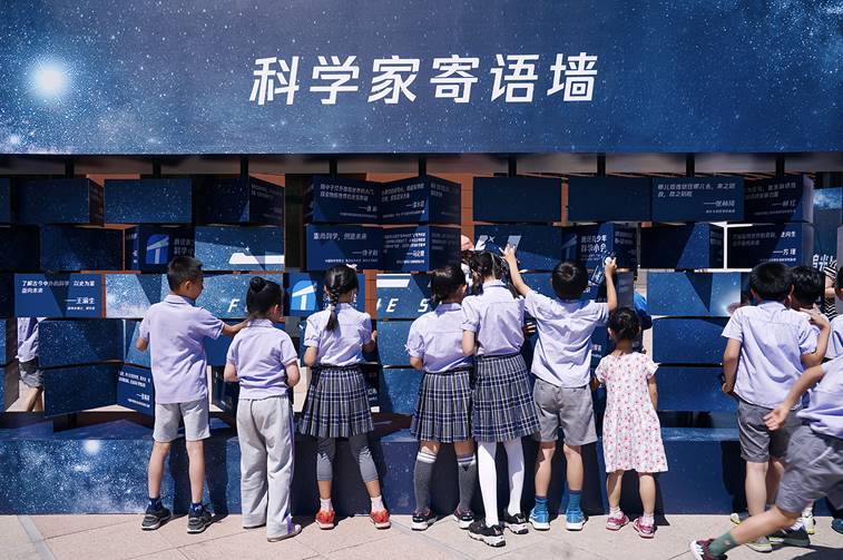 孩子们在腾讯青少年科学小会现场驻足浏览百位科学家的寄语