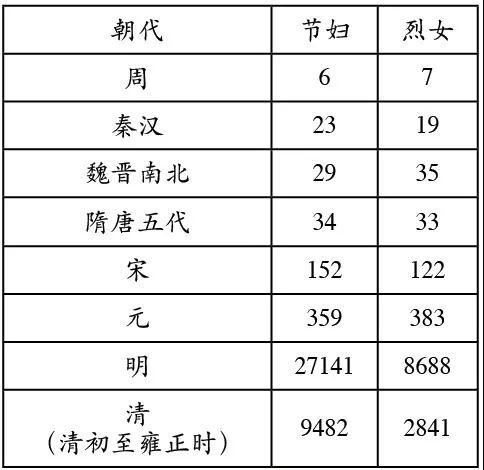 东周至清前期节妇、烈女数量变化表
