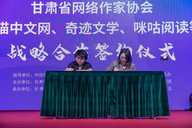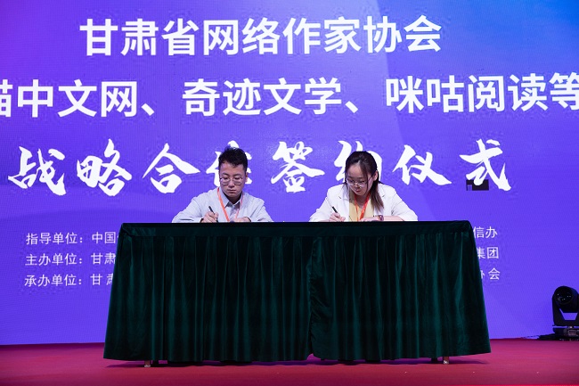 甘肃省网络作协秘书长王熠和奇迹文学总编辑郭晨辰签订战略合作协议