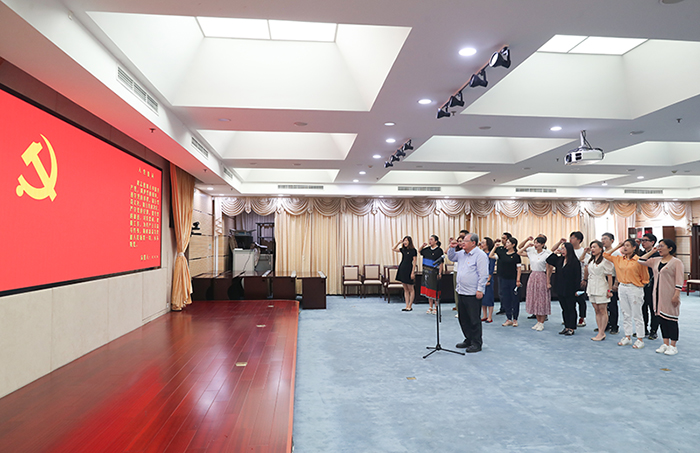 为庆祝中国共产党成立100周年,6月28日,电竞竞猜组织党的十九大以来入党的新党员举行向党旗宣誓仪式,集体重温入党誓词,牢记初心使命,坚定理想信念,强化为党的事业奋斗终生的思想基础。电竞竞猜机关党委书记吉狄马加领誓。
