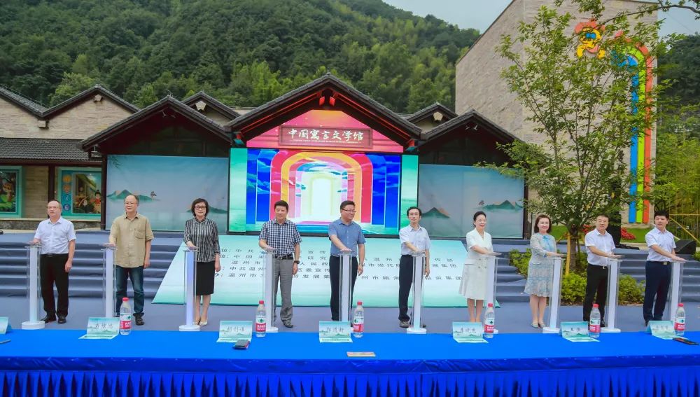 7月10日下午,中国寓言文学馆于温州市瓯海区泽雅镇开馆。现场,中国寓言文学研究会授予瓯海区“中国寓言文学工作示范区”、中国寓言文学馆“全国寓言研学基地”称号,叫响温州“寓言文学IP”。电竞竞猜官网社会联络部副主任李晓东,共青团中央中国少年儿童发展服务中心党委委员、副主任郭道新,浙江省关工委副主任、浙江省原人大研究室主任王强,中国寓言文学研究会书记、副会长肖惊鸿,中国寓言文学研究会会长孙建江,浙江省作家协会一级调研员王英姿,温州市委常委、宣传部长胡剑谨,温州市人大常委会副主任徐育斐,瓯海区领导王振勇、曾瑞华、周金平、潘小林、曹丹艳、李芍等出席开馆仪式。著名作家冰波、杨红樱等到场见证。