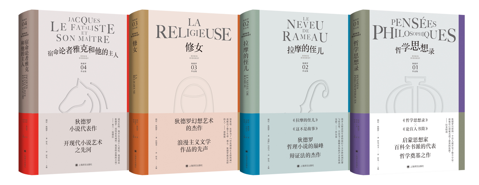 狄德罗作品集(1-4卷),包括《哲学思想录》《拉摩的侄儿》《修女》《宿命论者雅克和他的主人》 [法] 德尼·狄德罗 著 罗芃 主编 罗芃、章文、袁树仁、吴达元、符锦勇等译, 上海译文出版社,2021年6月出版