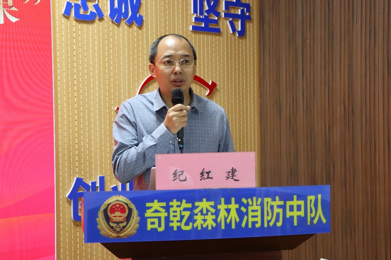 在公开课上,纪红建首先讲述了在奇乾中队的采访感受,向奋战在森林消防第一线的“平凡而伟大的英雄”致以崇高敬意,并以“做时代的记录者”为题进行授课。他谈到,报告文学是对现实生活的真实记录和呈现,真实是报告文学的生命,要写出平凡人的感人故事;报告文学还是使命文学,是时代的记录,需要作家走进生活现场。他围绕《哑巴红军传奇》《乡村国是》《大战疫》等作品的创作经历,通过一个个详实、感人的事例,阐述中国在脱贫攻坚方面取得的巨大成就和自己在武汉抗疫前线采访的感悟体会,展现出作家的责任与担当。最后,他向指战员们推荐了阅读书籍,并勉励大家要坚守寂寞,让青春在林海中绚丽绽放。