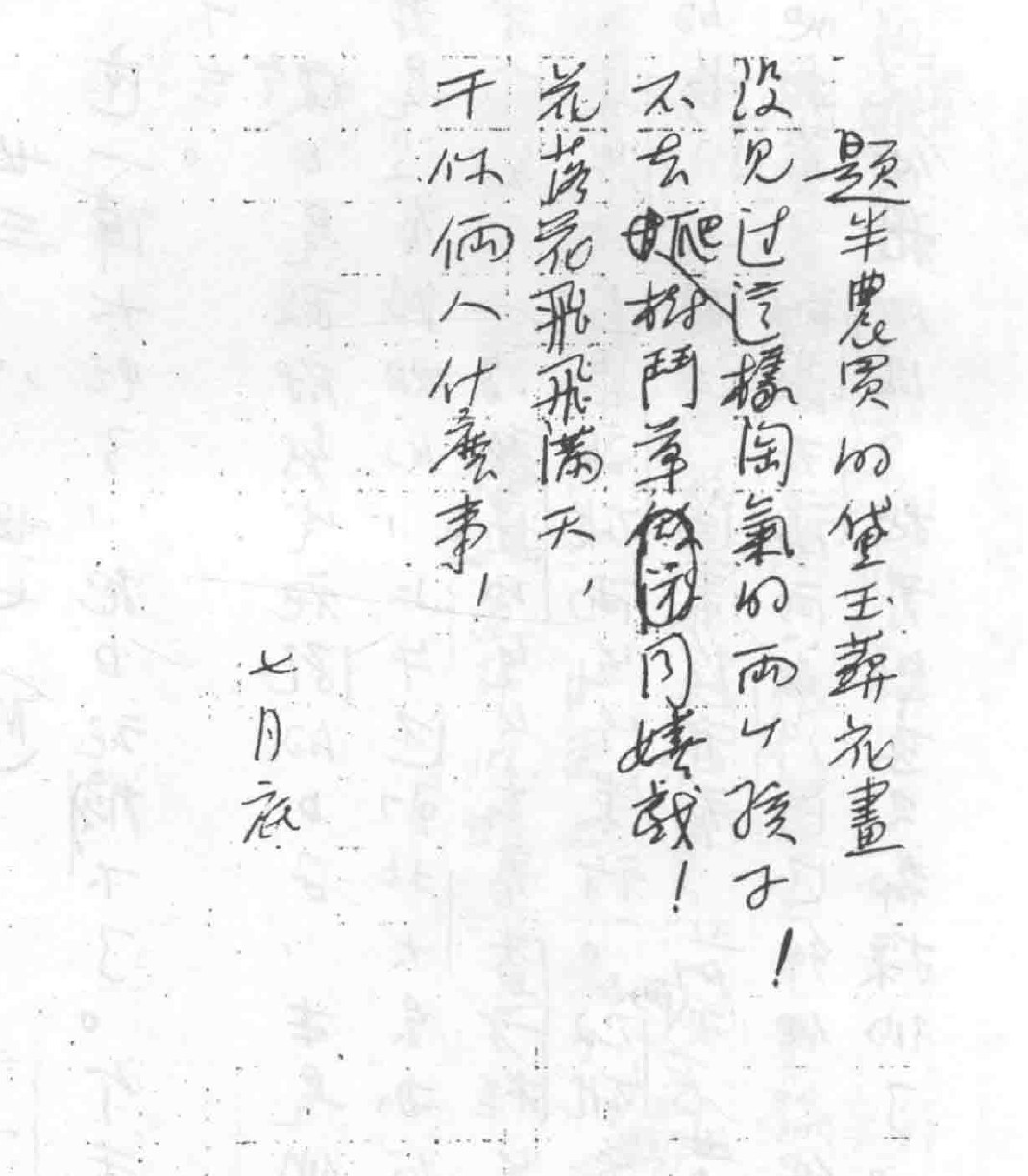 我也好久做不出好诗了,丑诗却是有的;三月前,寄了几首在启明处,你看见么?如今把最近梦中所做的一首诗,写在下面(还有几首在启明处,是同时寄的):
