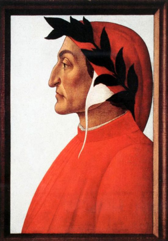 窃以为,围绕但丁的《神曲》,存在着一个耐人寻味的两极化现象。那就是,很少有人通读过全本的《神曲》(长达一万四千多行),但又很少人没有被它的遗韵所熏陶过。时至今日,这个有趣的现象在世界范围内愈加明显。去欧洲旅行的游客有机会驻足欣赏波提切利为《神曲》所作的一百幅插图,或是被罗丹的雕塑杰作《地狱之门》深深震撼;喜欢浪漫主义音乐的人们可以在李斯特或柴可夫斯基的标题音乐作品中反复聆听到但丁《神曲》中的主题,体验诗歌与音乐的二重奏;无数的电影爱好者则在大卫·芬奇《七宗罪》、朗·霍华德《但丁密码》等悬疑佳作中思考、回味《神曲》的机关与奥秘。可以说,在世界范围内,几乎没有一部诗歌,乃至没有一部文学作品能像但丁《神曲》那般,对后世的艺术创作产生如此巨大而深远的影响,以至于阿根廷著名诗人、作家博尔赫斯这样评价道:“文学以及一切书籍的顶峰就是《神曲》。”波提切利绘但丁像