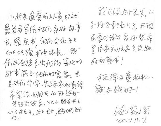 2017年任溶溶手写卡片