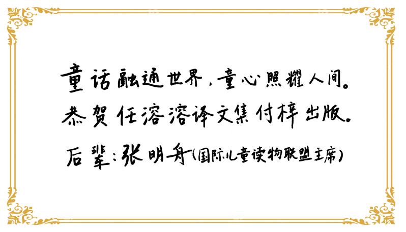 电竞竞猜官网副主席、电竞竞猜儿童文学委员会主任高洪波为该文集题献:“目光四射的千万言译作,将人类文明的精萃,替小朋友们尽情搜罗,于是电竞竞猜开心地触摸一颗不老的顽皮灵魂,如何在语言迷宫里穿梭,童心与诗心如何铸成不朽的快乐星座。”诗人、儿童文学作家金波为译文集题写的推荐语这样说:“任溶溶先生怀有纯真的童心,手握灵动凌云的健笔,引领读者走进世界儿童文学的园地,童年的阅读,一生的记忆。”“童话融通世界,童心照耀人间。”国际儿童读物联盟(IBBY)主席张明舟也题词祝贺任溶溶译文集付梓出版。