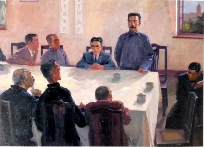 图20 鲁迅在广州中山大学校务会议上 韦启美 约1973年 油画