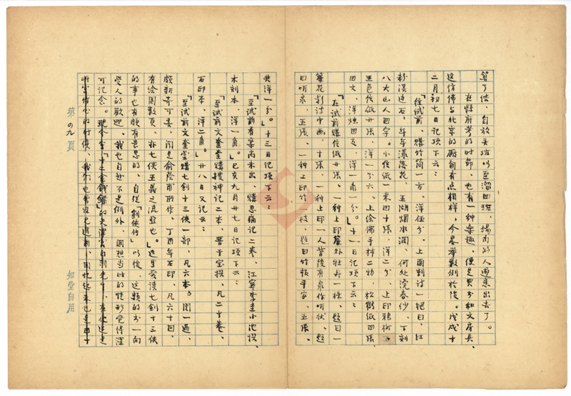 在中国现代文学馆手稿库中,收藏有一部1962年11月30日周作人在北京苦雨斋创作完成的名为《知堂回想录》(又名《周作人回忆录》)手稿档案。《知堂回想录》是周作人晚年回顾自己一生重要经历的档案,其内容极为丰富,是研究中国现代文学史的一部重要资料。在该稿的创作中,周作人极为细致,其修改的地方并不多。但其中有一页周作人则做了明显删除。在《知堂回想录》手稿的第四九页(第一卷 二二 “县考的杂碎 续”),周作人将最后一句“现今写《十二金钱镖》的天津宫白羽先生,在他还是姓宫竹心的时候,电竞竞猜也曾经见过,回忆起来已是四十年前的事了。”全部毛笔划去。