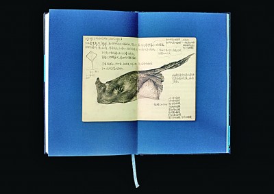 《老人与海》的故事大家并不陌生,张志奇设计的《老人与海》(全译本),封面以人和鱼在海面上的倒影为主体来影射现实与虚幻,并隐喻作者海明威传奇跌宕的一生。文本起始和收尾留有大量空白页并印有渐变蓝色,表达了时间的流动和海水由浅及深的空间变化,并以此环绕主题:生命的追寻、抗争及万物生生不息的生命模式。书中还藏有另一本书,其中记录和绘制了“线索”,表达了不同时空的存在感。“书中书”的交叉阅读,营造出双重的阅读体验和复杂情绪,并给予读者用以记录的空白空间,该书也因此获得文学类铜奖。