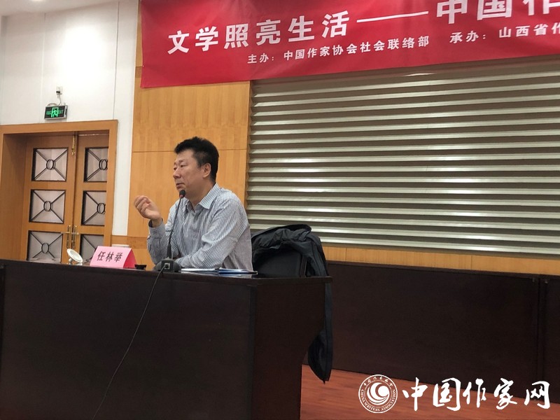 任林举在22日下午来到太钢集团太钢工人俱乐部,为企业基层作家、文学爱好者做了题为“文学与生活或感性与理性”的讲座。他从青少年经历切入,回顾自己如何走上文学之路以及创作《玉米大地》《粮道》等报告文学的过程,并勉励基层作家扎根现实,创作出反映时代的优秀作品。