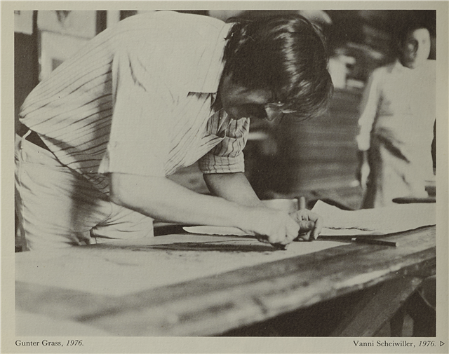 提到君特?格拉斯,人们最耳熟能详的恐怕就是他写作的小说《铁皮鼓》和获得诺贝尔文学奖的事实。1959年问世的《铁皮鼓》被瑞典文学院誉为“二战之后世界文学最重要的作品之一”。文学艺术本来相通。不过也许是获得诺奖的声名过于耀眼,致使君特?格拉斯的另一重身份长期被湮没在一顶巨型桂冠之下,鲜为人知。