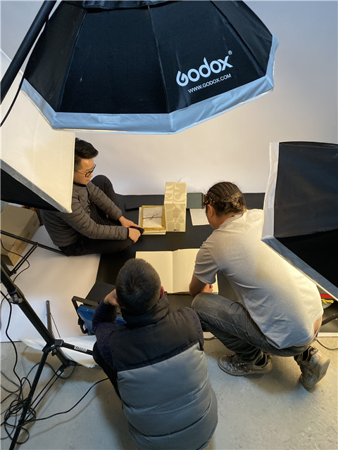 为了更加精准地还原艺术家手作书特别的质感,寻找能胜任的摄影师变得非常重要。本来找过几任都不满意,后来幸运地遇到了《新周刊》曾经的王牌摄影、后来成为职业艺术家的阎实。好事多磨,是《书之极》创作始终的写照。“由谁掌镜”的问题刚刚尘埃落定,继而又要面对“在哪里拍”的灵魂拷问。好在王骥和合作伙伴们志趣相投,大家都很喜欢“车库创业”起家的扎克伯格、乔布斯,于是几人一拍即合,在王骥家的地下车库搭建起了拍摄《书之极》的摄影棚。