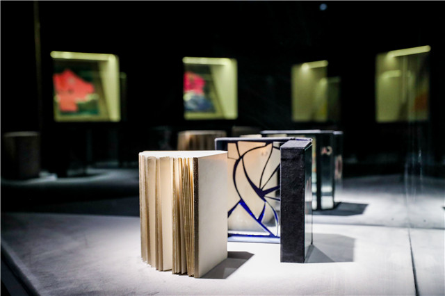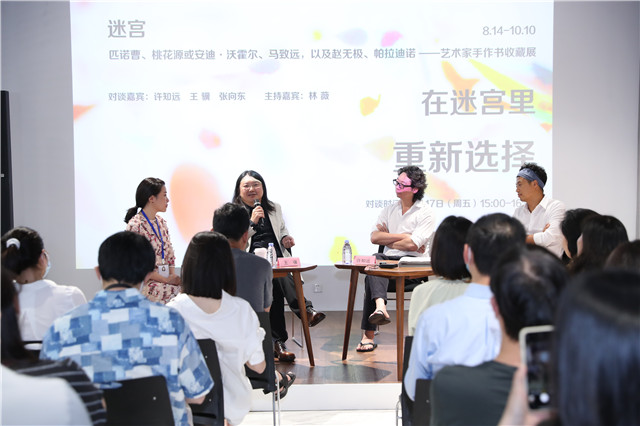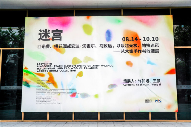 由作家许知远和王骥共同策展的“迷宫:匹诺曹、桃花源或安迪·沃霍尔、马致远,以及赵无极、帕拉迪诺——艺术家手作书收藏展”现场