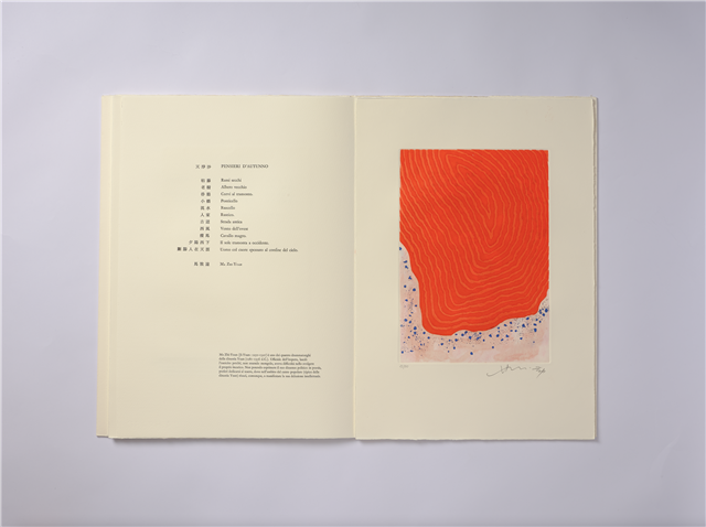 记者:收录在《书之极》中常玉的《陶潜诗集》是艺术家创作中少见的中国古典题材,萧勤的《夜光杯》搭配中国古代诗人的名篇,诗画相得益彰,可以窥见艺术家一个时期的创作风貌。之前你曾谈到,受个人审美影响,很少收藏美国艺术家作品,而我注意到,《书之极》也收录了劳申伯格的一本书。那么如何从浩如烟海的艺术家手作书中选取出一部分编辑成册,其中遵循了怎样的标准?