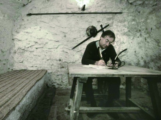 年轻时,他很瘦,有着典型荷兰人的窄脸庞,头发柔软弯曲,眉毛浓黑,鼻子坚挺呈45度角。这是一张他年轻时的黑白照片。当时他正侧歪着头,握着笔,悬停在留白宽阔的打印样章上方,西服是深色的,雪白的衬衫,扎了条有很多小菱形图案的领带,也可能是浅黄色的,或是淡金色的。从为数不多中年以后的照片上可以看出,这张脸已变得松弛舒展起来。没变的,是他喜欢侧歪着头,眉毛略微上扬,眼神淡定而又有距离感地看人的样子。他这个人不管神情如何淡然,似乎都有种骨子里透出的得体且不失宽容的骄傲气息,与此相应的,则是意味深长的眼神。只有在跟好友们,比如雨果·克劳斯,或是翁贝托·艾柯在一起时,他才会露出亲切默契的笑容。