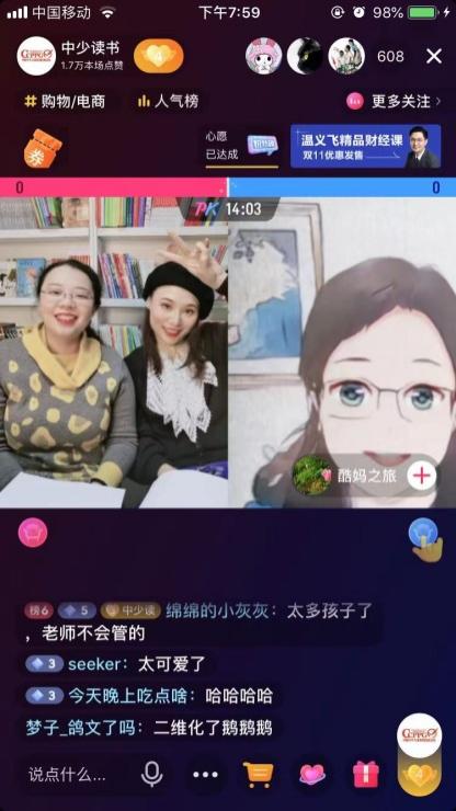 为响应“国际反校园暴力和欺凌日”,中国少年儿童新闻出版总社有限公司(以下简称“中少总社”)旗下官方抖音号“中少读书”于11月7日晚为全国小朋友们举办了一场主题为“保护自己,关心他人”的线上心理健康直播,本次活动特别连线到青少年心理健康辅导员、心理悬疑小说“紫雾心谜”的作者晏菁,为小读者们普及校园欺凌的防范与解决办法,并在线上解答了不同小读者的成长困惑。