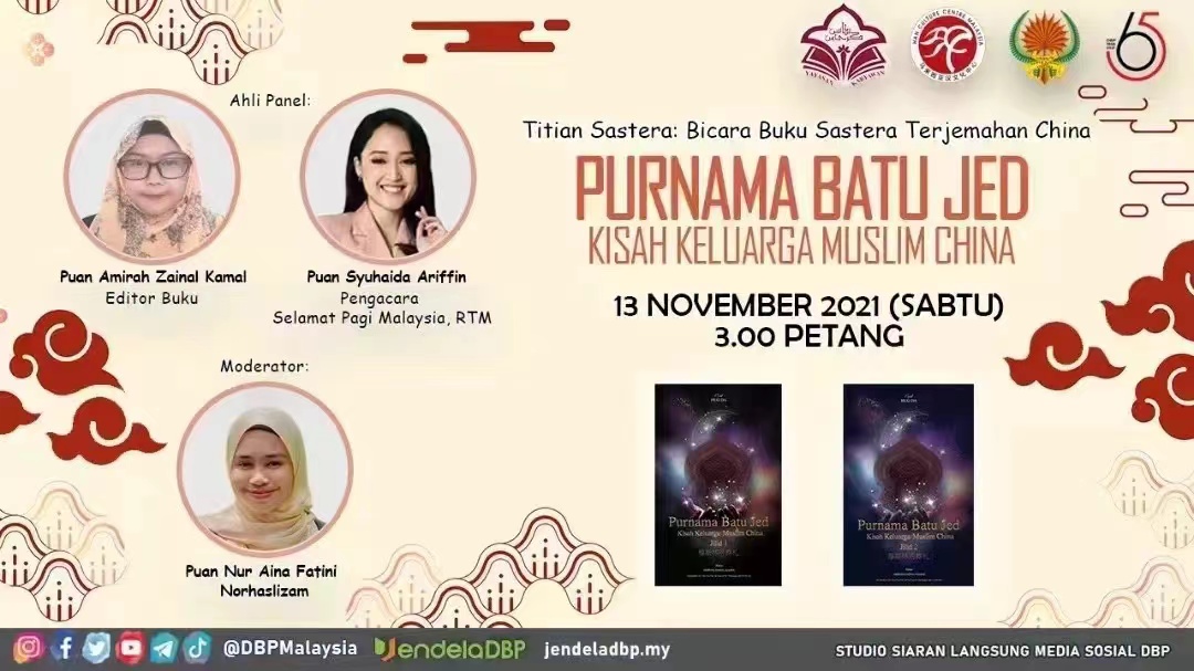 活动开始,艾美拉从该书的译名出发,向线上读者介绍编辑《穆斯林的葬礼》马来文版时的背后故事。考虑到需要吸引马来西亚读者的兴趣,艾美拉在编辑此书期间向两位译者和出版社提出建议,希望能以全新的名字为该书命名。最终,《穆斯林的葬礼》马来文版Purnama Batu Jed(又名《新月奇玉》)就这样出现在读者的眼前。谈到本书的主题和中心思想,苏海妲说自己被书里所描绘的家庭关系深深吸引。同为穆斯林,每每看到作者笔下勾勒的60年代中国回族的生活习惯和文化传统,不禁深有同感;在面对小说中那些错综复杂的家庭关系、爱恨纠纷时,纵使清楚地知道这只是小说情节,依然为角色们的遭遇感到痛心和惋惜。或许这就是一部优秀小说的魅力,能够从头到尾牵引着读者的情绪,为角色的欢喜而欢喜,为角色的伤心而伤心。