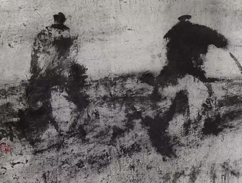 杨刚(1946-2019),北京画院画家,国家一级美术师,中央美术学院“文革后”首届研究生,师从叶浅予、蒋兆和、李可染、卢沉、周思聪诸先生,水墨大写意、速写作品独步当代,代表作品有水墨写意《古战场》《望烟归》《余音》《登上山顶》、写意油画《锡林浩特往事》《白毛风》《草原婚礼》《毛毛雨》、工笔《迎亲图》等,作品多次在中国美术馆、大英博物馆、瑞士巴塞尔艺术博览会等展出。