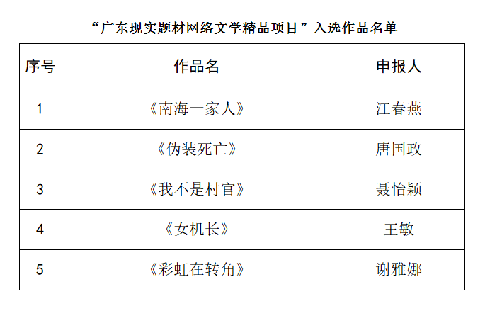 “广东现实题材网络文学精品项目”入选作品公示