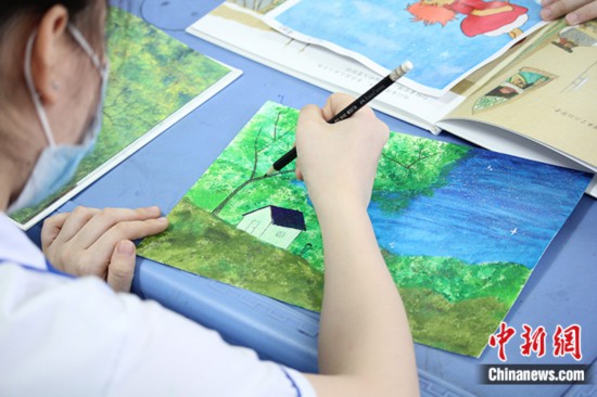 图为学生绘制作品。 中新社记者 欧阳开宇 摄