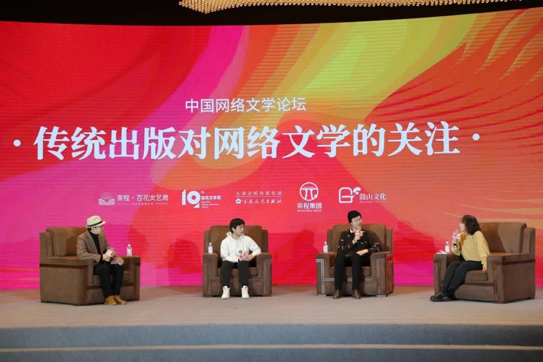 12月18日上午10点30分,中国网络文学论坛在天津梅江中心皇冠假日酒店随之举行,网络文学论坛邀请到作家房昊、终月冥以及金孵文化版权负责人孙岩。主持人和嘉宾针对近年来传统出版平台对网络文学的关注逐渐增多进行了探讨。房昊也结合自身从微博、知乎、脑洞故事板崛起,被出版社关注,相继出版了《世事如刀我来领教》《从前有个书生:魏晋篇》等图书的经历来论证网络文学和实体出版的双向影响。苏小懒、张佳玮、安迪斯晨风、幻灭妖僧、银教授等著名作家、评论家录制了场外视频,祝贺中国网络文学论坛圆满举办。