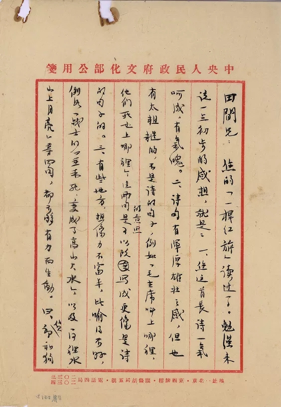 茅盾先生是文人书法中的“瘦硬”者最为典型的代表之一。茅盾一生勤于著述,始终保持着使用毛笔书写的习惯,无论是办公室,还是家中书房,毛笔、砚台都是他的案头常物。茅盾从来不认为自己是书法家,这其实代表了他们那一代文人整体的价值观:年轻的时候要多做学问,写字应该是业余的,但写字好这是最基本的。此次手迹展撷取了部分代表性手稿制成条幅,力图呈现出茅盾先生手迹的基本面貌。欣赏茅盾先生的手迹,不仅能感受到历史的脉动,也能收获丰沛的艺术享受。