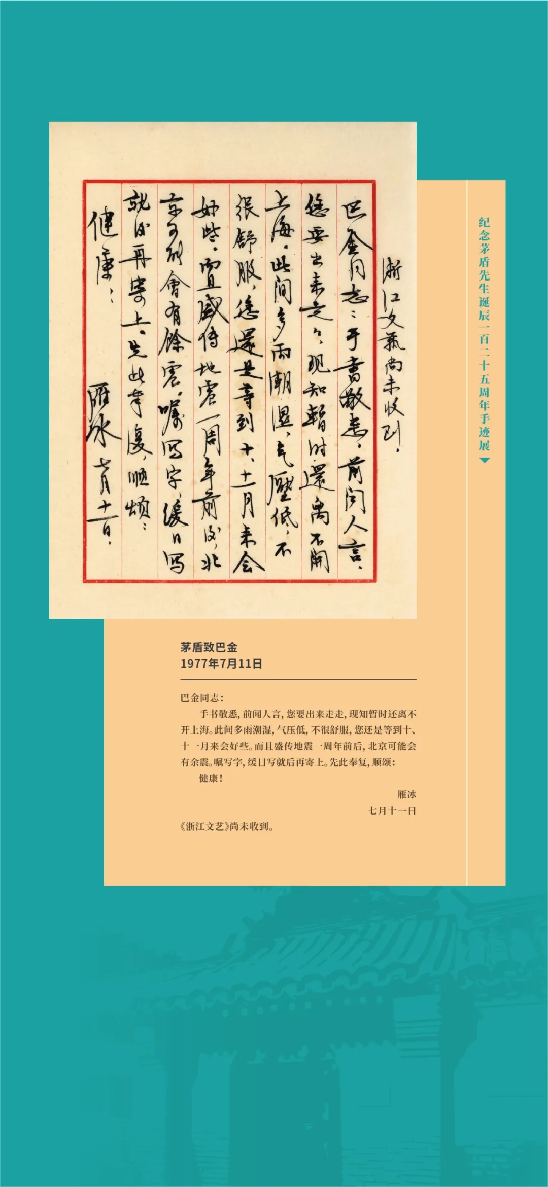 中国现代文学馆举办“纪念茅盾先生诞辰125周年手迹展”