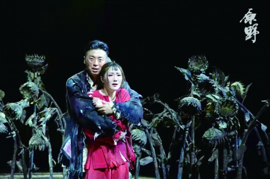 该版《原野》中,演员亦很重视通过细节刻画人物,为角色的痛苦和欢欣找到理由。比如,金子和仇虎“偷欢”之后,仇虎和金子在送花、拾花、戴花上的“拉锯”,层次细腻地展现了两人的内心。接下来,婆婆出现,对金子严厉质问,以手为目,检视其周身,摸到首饰时,金子语气带着骄傲和挑衅,理直气壮地说是大星买的,当婆婆往上摸到她头上的花时,金子一下子又慌了神,声音颤抖,带着哭腔。等到婆婆“抬出”公公焦阎王时,金子的恐惧达到极点,委顿于地,无法言语。此时,演员完全沉浸到角色情感之中,营造出共情、共鸣的效果。再如,得知被欺骗、背叛的真相之后,大星仍在做着挽回的努力,把金子紧紧抱住,此时的金子却身躯后绷、双手下垂,肢体的抗拒诉说着内心的痛苦、冷漠甚至厌弃,也让人物的无依靠感表现得愈发强烈。