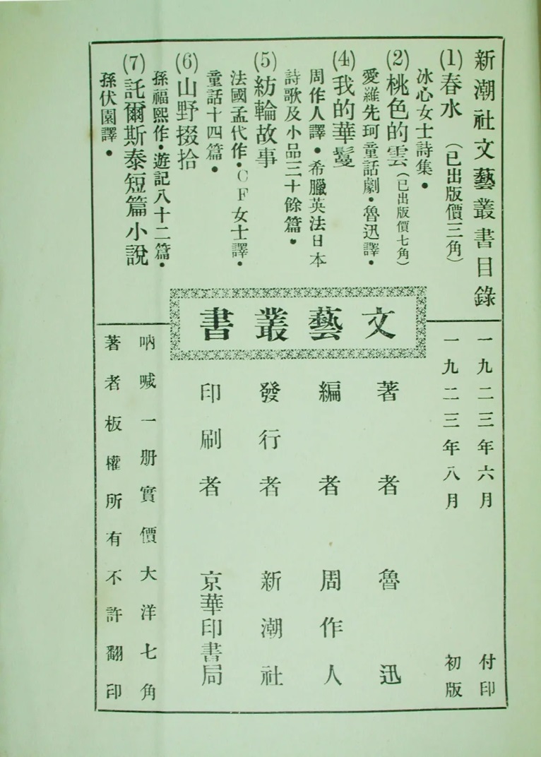 鲁迅《呐喊》版权页