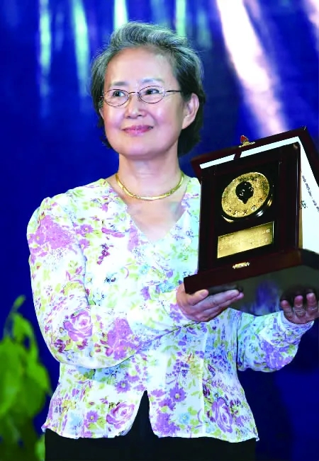 张洁在第六届茅盾文学奖颁奖典礼。2005年,《无字》获第六届茅盾文学奖。