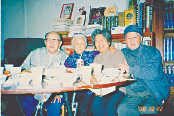 左起周有光、张允和、周孝华、张寰和在北京合影。