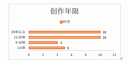 电竞竞猜将年龄划分为三个区间,可以看到作者的年龄跨度较大,年龄最小的尚在读高中,一边学习,一边写作,从事文学创作仅一年。年龄最大的创作至今已有20年。但这也还不是这群作者中创作年限最长的,有人已经有近40年创作历史,所有作者中有大约三分之二创作年限都在10年以上,可以称得上是比较有经验的写作者了。