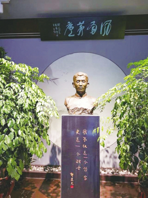 从后院回到故居门口的路上,当再次经过正屋,客厅中央郁达夫半身铜像下方书写着的他的文字“我不仅是一个作家,更是一个战士”便显得更加意味深长。