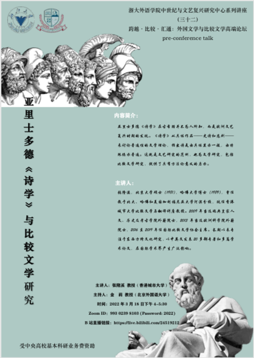 张隆溪教授演讲的题目是“亚里士多德《诗学》与比较文学研究”