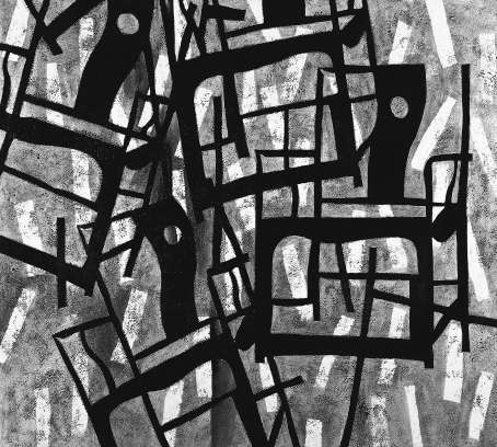 1986年,作品《故园》不仅让世界认识了王怀庆,也让王怀庆更清醒地认识了自己。在江南园林的建筑里,他第一次强烈地感受到自己艺术创作的落脚点。画面中几根梁柱构筑起一个纵深感的情绪空间,没有人,没有家具,没有景物,更没有江南水乡的印痕,只有不可言说的哀婉在光影中弥漫。这种分明又不刻板的书写性的线条以及带有生命体验的具有文化隐喻的创作让王怀庆着了迷,表现的物象由建筑拓展到家具、椅子。