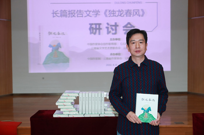 研讨会最后,段爱松诗意、深情地回忆了与潘灵共同写作的历程。他在答谢辞中说,写独龙族的故事于他而言是机缘巧合,但却是他一生难忘的事。“在所有关于独龙族的历史中,没有任何一个时期有现在这般发人深省,一个曾经快要灭绝的弱小民族,在不断寻找生存发展的机会中,如何抬起了头、挺高了胸、迈开了步,勇敢地、有尊严地站在了时代的面前,这个答案就藏在《独龙春风》里,”段爱松表示,独龙族的发展跨越的确是一个奇迹,一个只有在中国才能创造的奇迹。“感谢……是文学让我遇到了《独龙春风》;是你们,让我在文学的道路上,遇见了真正的自己。”