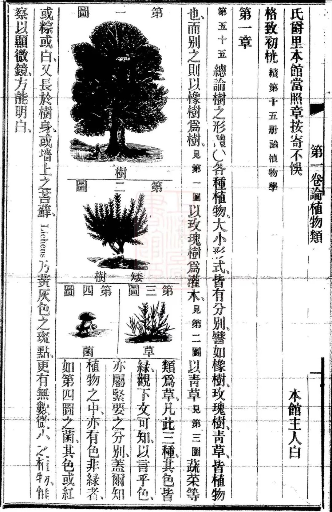 如果说“拆字造句”的游戏笔墨流露出鲁迅的文字“趣味”,那么对“棗树”的“文字反刍”则标识着他突破“趣味”文字的努力。这种努力首先指向了对“文字”现实及物性的恢复。具体来说,鲁迅对“棗树”的物象描写依托了晚清以降传入中国的现代科学(尤其是生物学)知识。在第四段对“棗树”的反复描摹中,鲁迅似在以“植物学之眼”扫描“棗树”的各个器官:叶子、果实、树干和枝杈。对这些不同器官的描摹,鲁迅的文字带有解剖图一般的精确性,也正是这种高度精确、极端细致的书写使得“棗树”并未生成浑然的诗学意象,而是呈现为科学意义上的“有机体”(即严复以“官品”所翻译的“organism”)。