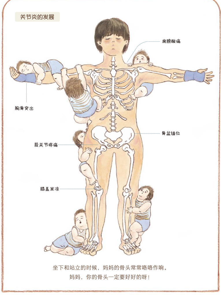 《我的妈妈》内文图,展现了产后的妈妈会发生骨骼的疼痛