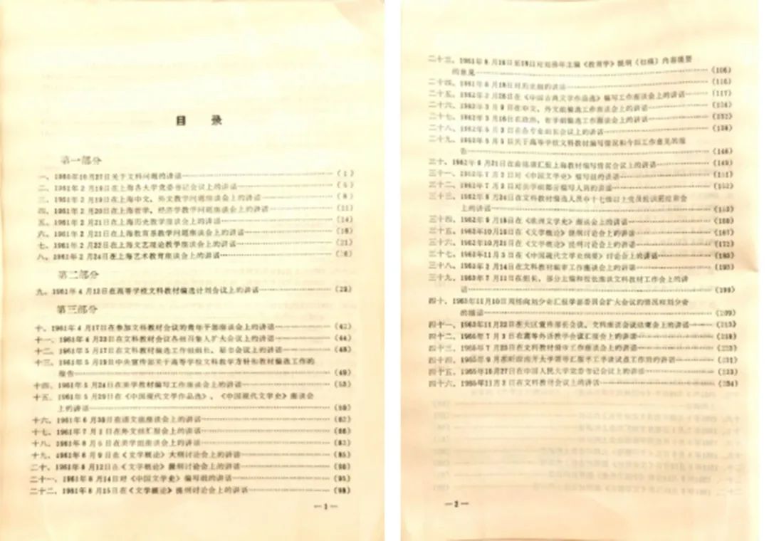 《黑话集》凡46篇,“以一九六一年四月的‘高等学校文科教材编选计划会议’为中心,分会前、会上、会后三个部分”[9]。会前部分收入准备阶段的8次讲话。会上部分仅1篇,即周扬1961年4月12日《在高等学校文科教材编选计划会议上的讲话》被独立单列。此种编法突出了这一大会报告的纲领性位置。会后部分37篇,主要是周扬在文科教材会议后的历次教材工作会议上的讲话记录。