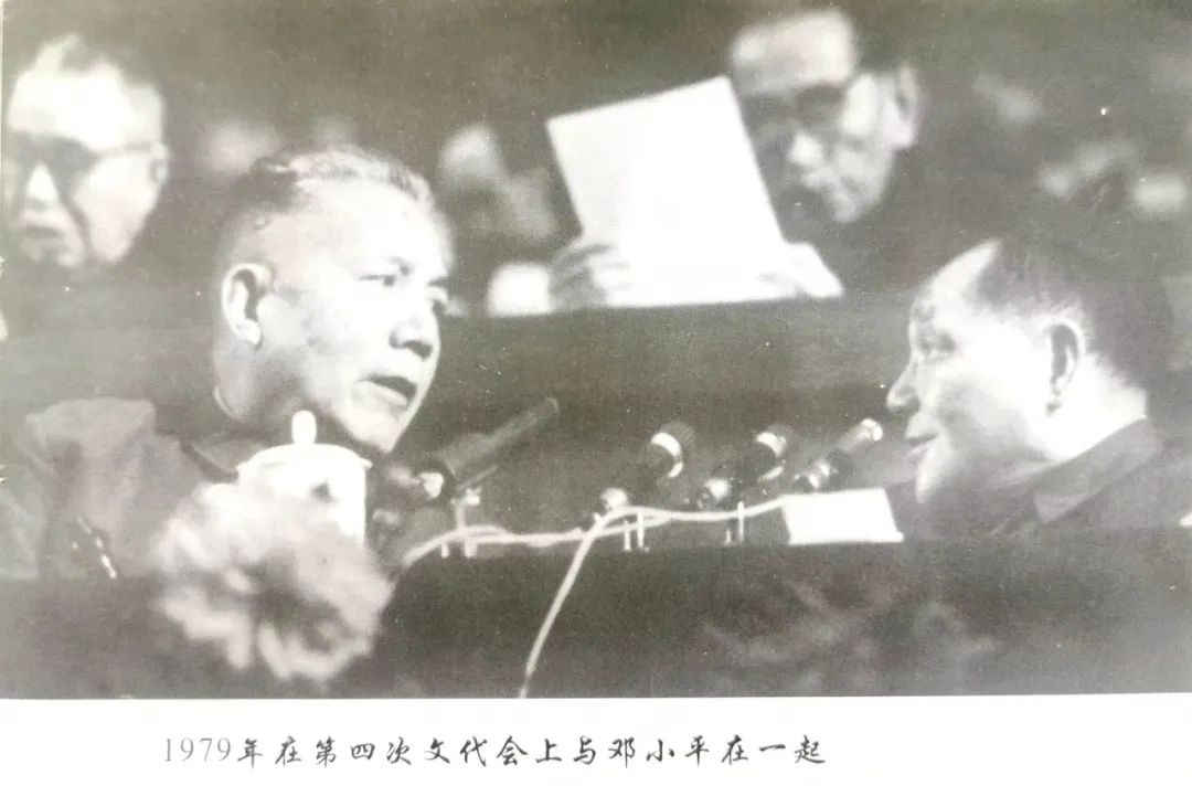 1979年在第四次文代会上周扬与邓小平合影