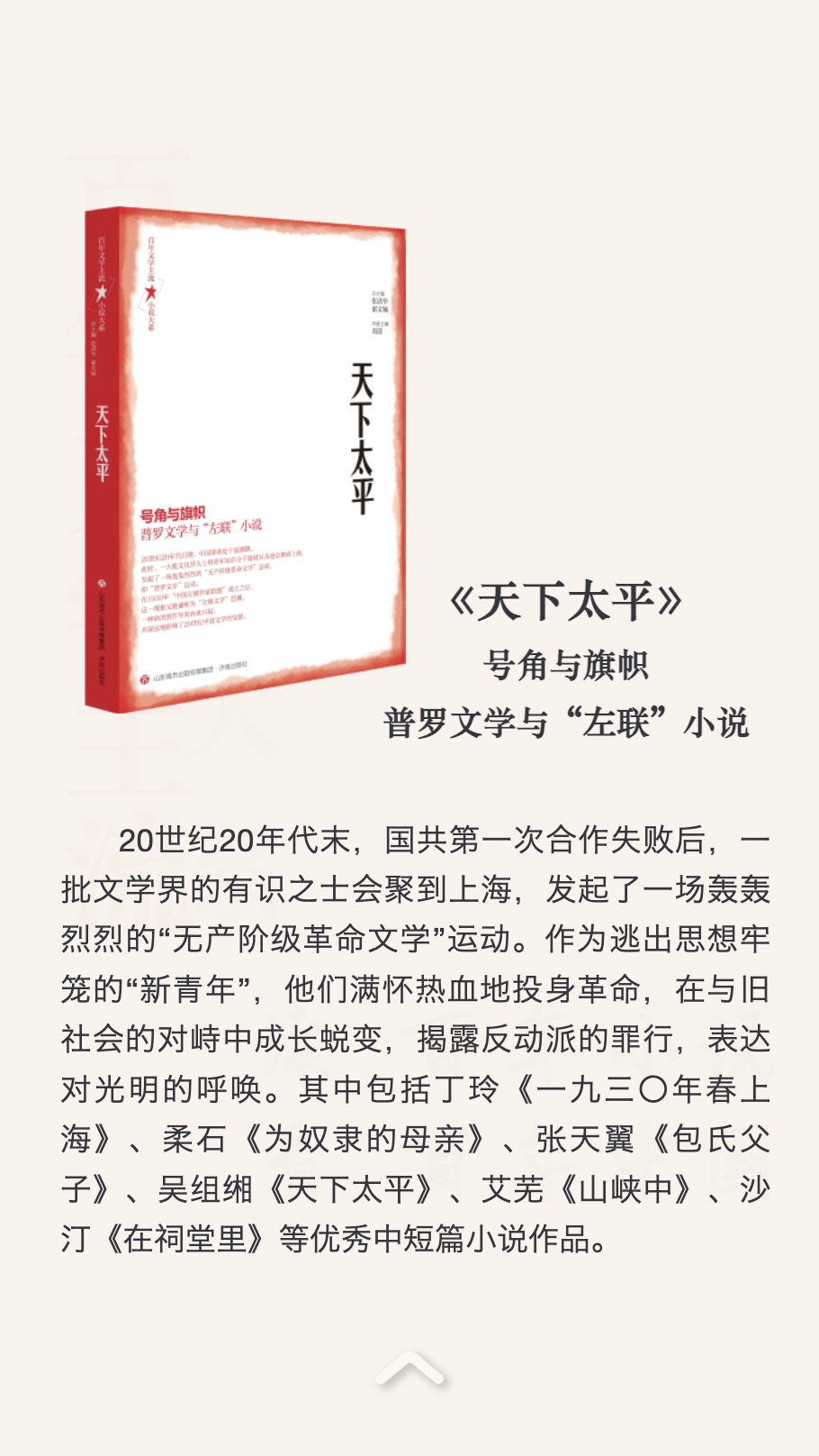 一个世纪以来,新文学始终与现代中国社会历史的风云变迁相互交织激荡,从启蒙到救亡,从民族解放到社会变革,所有重大的事件、历史的转折,都通过文学的方式见证其精神流变。“百年文学主流?小说大系”共计十卷,以近两百万字篇幅记录百年文学主流中最重要、最精彩的中短篇小说,试图通过对经典作品的系统梳理,完整形象地再现百年中国的文学景观。
