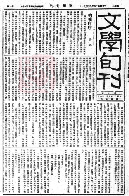 《呐喊·自序》发表于1923年8月21日北京《晨报·文学旬刊》