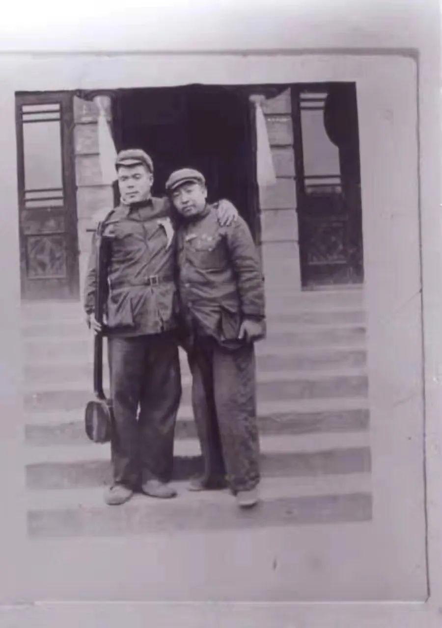 1950年,韩起祥(左)与陕北说书《刘巧团圆》记录整理者高敏夫(延安鲁艺人)合影