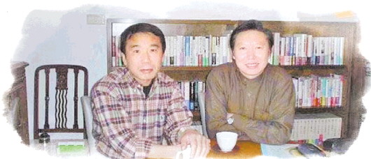 林少华(右)与日本作家村上春树在东京。