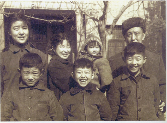 1963年马烽全家像。前排左起:马炎炎、马小林、马小泉;后排左起:段杏绵侄女小芬、段杏绵、梦妮、马烽。